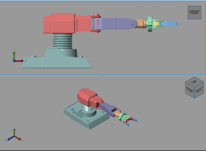 This example shows how to specify views of multibody models using the Multibody Explorer. In the visualization pane, you can interactively examine the body geometries, mechanical connections, and trajectories of a multibody model in 3-D space. To view model details, you can adjust the views of a model. You can change the view by: