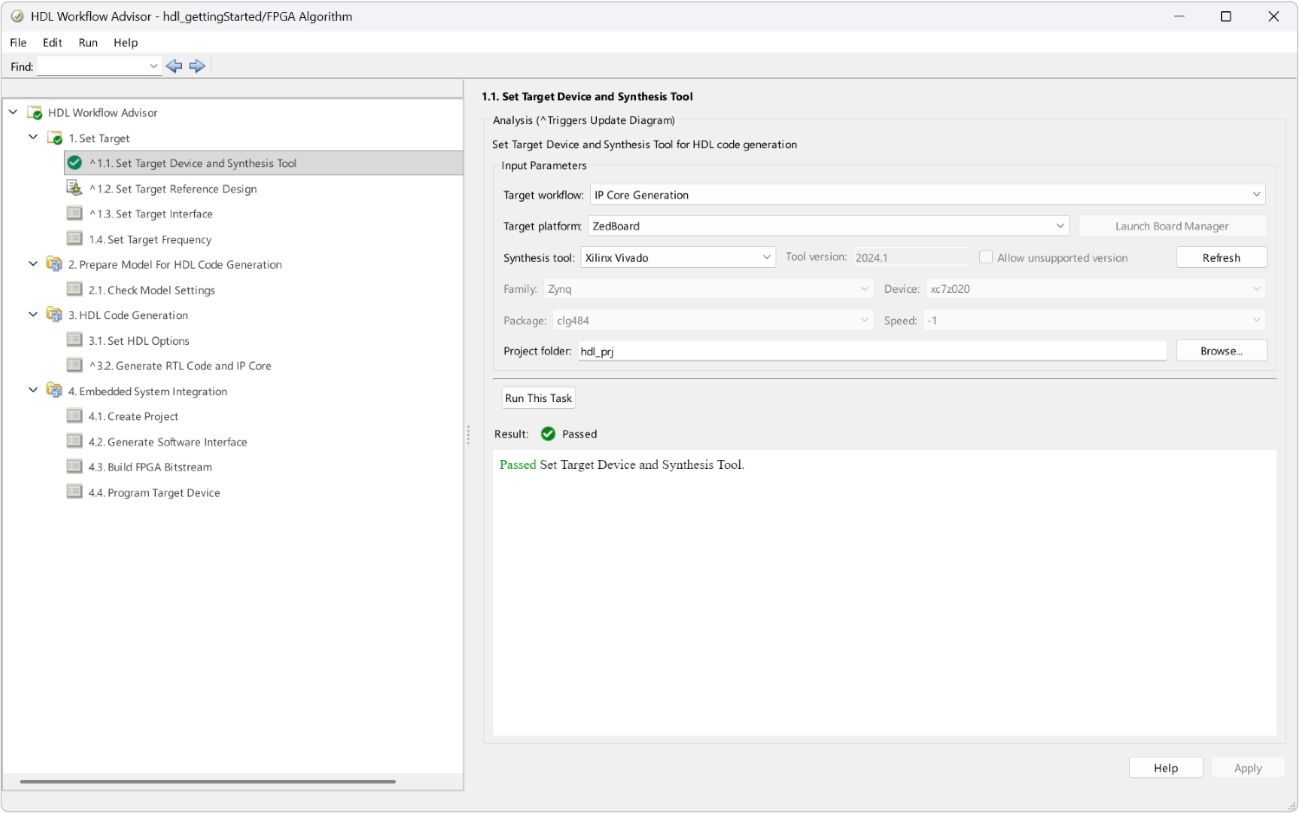 1. Open HDL Workflow Advisor by clicking Workflow Advisor on the HDL Code tab of the Simulink toolstrip.