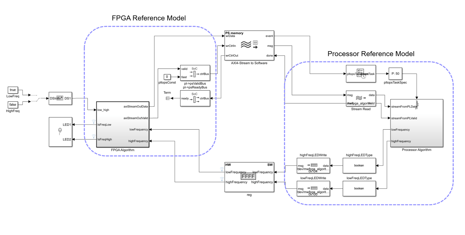 3. Group the blocks that run on the FPGA and create an FPGA reference model. Group the blocks that run on the processor and create a processor reference model.
