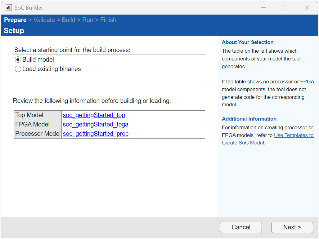 5. On the Setup screen, select Build model. Click Next.