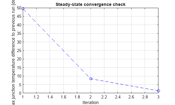 You observe that 3 iterations are enough to find a thermal steady-state with a reasonable accuracy of +-2 degC.