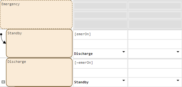 Emergency, in theStandbystate, add a transition that activates theDischargestate ifemerOnis true.In