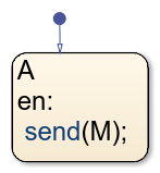 Le diagramme MessageSender utilise la syntaxe send(M) pour envoyer un message via le port de message de sortie. Le message est placé dans la file d’attente des messages d’entrée du diagramme MessageReceiver. Le message reste dans la file d’attente jusqu’à ce que MessageReceiver l’évalue.