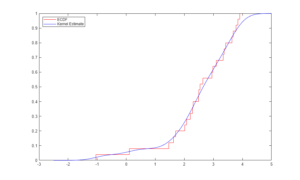 legend({'ECDF' 'Kernel Estimate'},'location','NW');