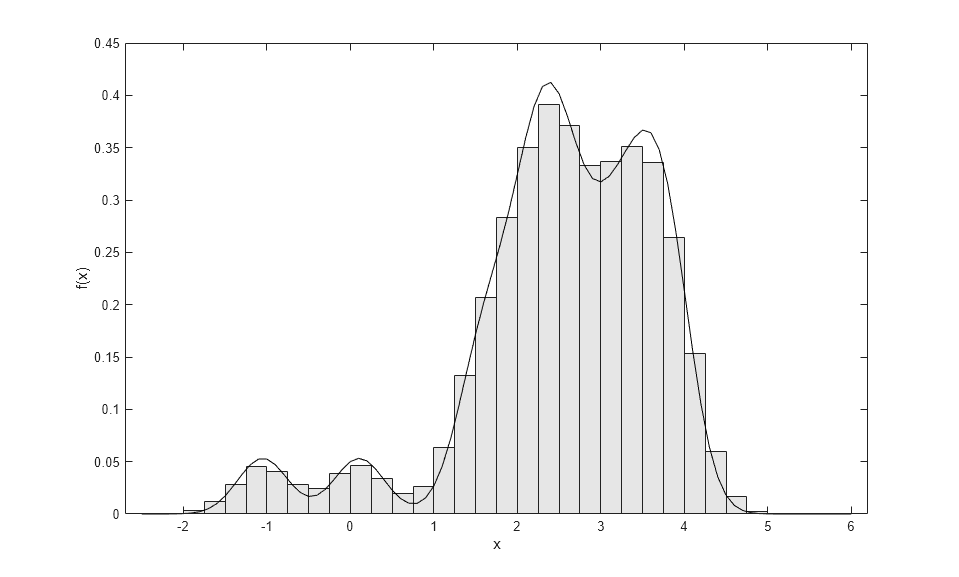 fgrid = ksdensity(x, xgrid, 'function','pdf', 'width',.3);