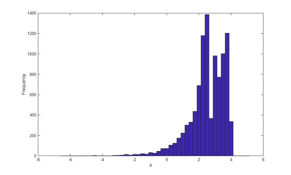 Another way to generate simulated data using kernel estimation is to use ksdensity to compute an estimate of the inverse CDF directly, again using the 'function' parameter. For example, transform those same uniform values.