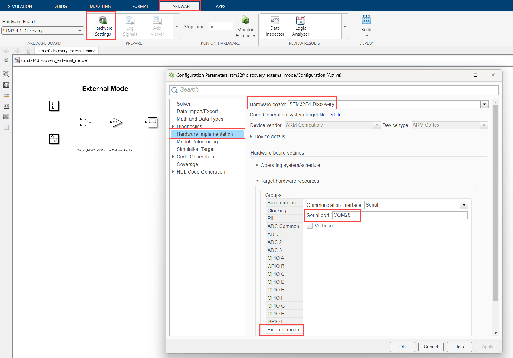 External Mode Using the STM32F4-Discovery Board