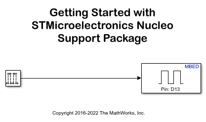 STM32 Microcontroller Blockset enables you to create and run Simulink models on supported STMicroelectronics Nucleo boards. STM32 Microcontroller Blockset includes a library of Simulink blocks for configuring and accessing STMicroelectronics Nucleo peripherals and communication interfaces.