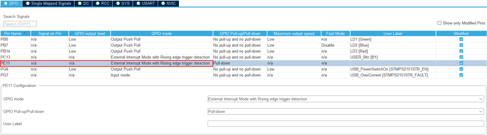 • Connect the INT1 pin of the LIS3DH sensor to pin PE11 on the STMicroelectronics STM32 processor based board.