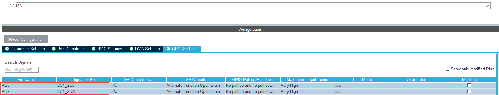 4. Perform the following configurations to enable and configure I2C1 to enable the communication between host and target as shown in STM32 CubeMX.