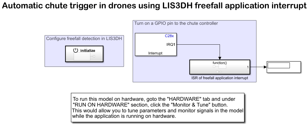 Open the c28x_i2c_lis3dh_automaticchutetriggering Simulink model.