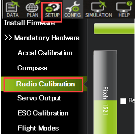 i. In Mission Planner. go to Setup > Radio Calibration.