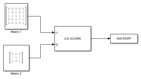 This example shows how to compute correlation between two matrices using 2-D XCORR block.