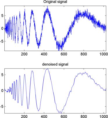 lev = 5; swc = swt(s,lev,'db1'); swcden = swc; swcden(1:end-1,:) = wthresh(swcden(1:end-1,:),sorh,thr); clean = iswt(swcden,'db1');