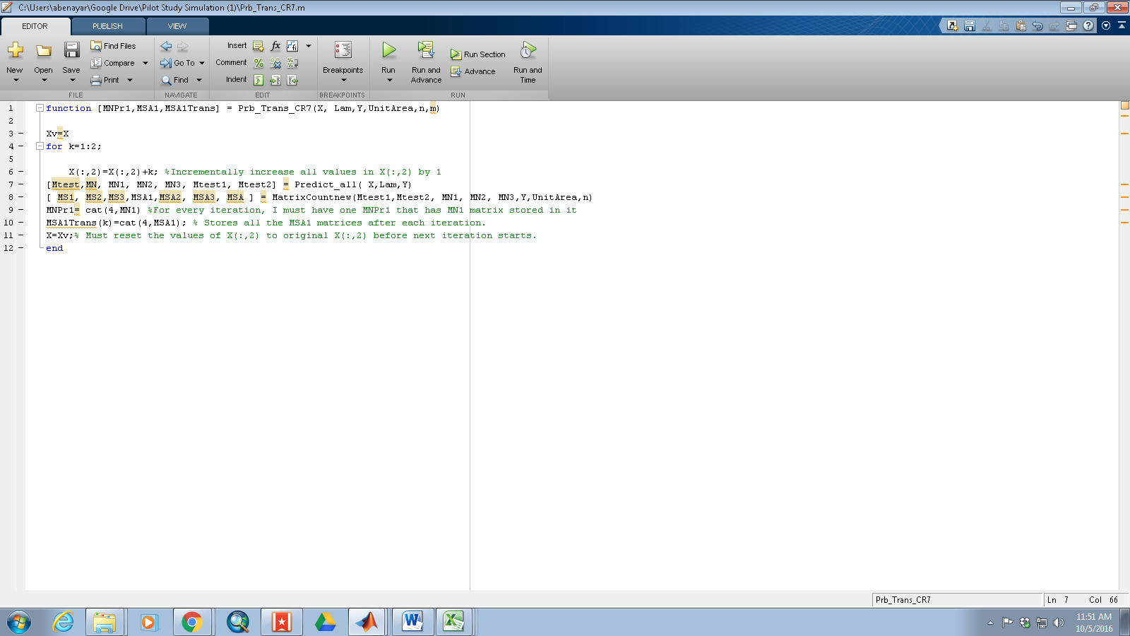 Hello Matlab again, I am going to ask my question more accurately this time. I am trying to modify an existing code to where I have a set of matrices saved independently after each iteration is complete. The Matrix that I need to be saved each time is 3D ( MN(:,:,14680). it has 14680 of (5*5) matrices stacked up in it. So basically if my outside loop iterates for 5 times, I need to get 5 MN matrices as output saved (MN1, MN2, MN3,MN4, and MN5). I attached a more simplified version of my code ( I tried using "cat" but did not work correctly
