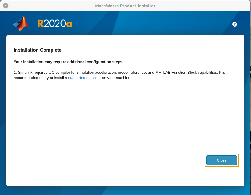 I just installed ubuntu 20.04 and I'm having troubles installing the newest MATLAB version. After the whole installation-process has loaded, this message was shown. I thought that it will only affect this "simulaton acceleration" feature, but after I closed the warning I had to realise, that MATLAB hasn't been installed at all. Before the second try I installed gcc, which is listed as a supported C compiler, but after installing again, I got the same resulte. Is somebody facing the same problems? Is there a solution for this?