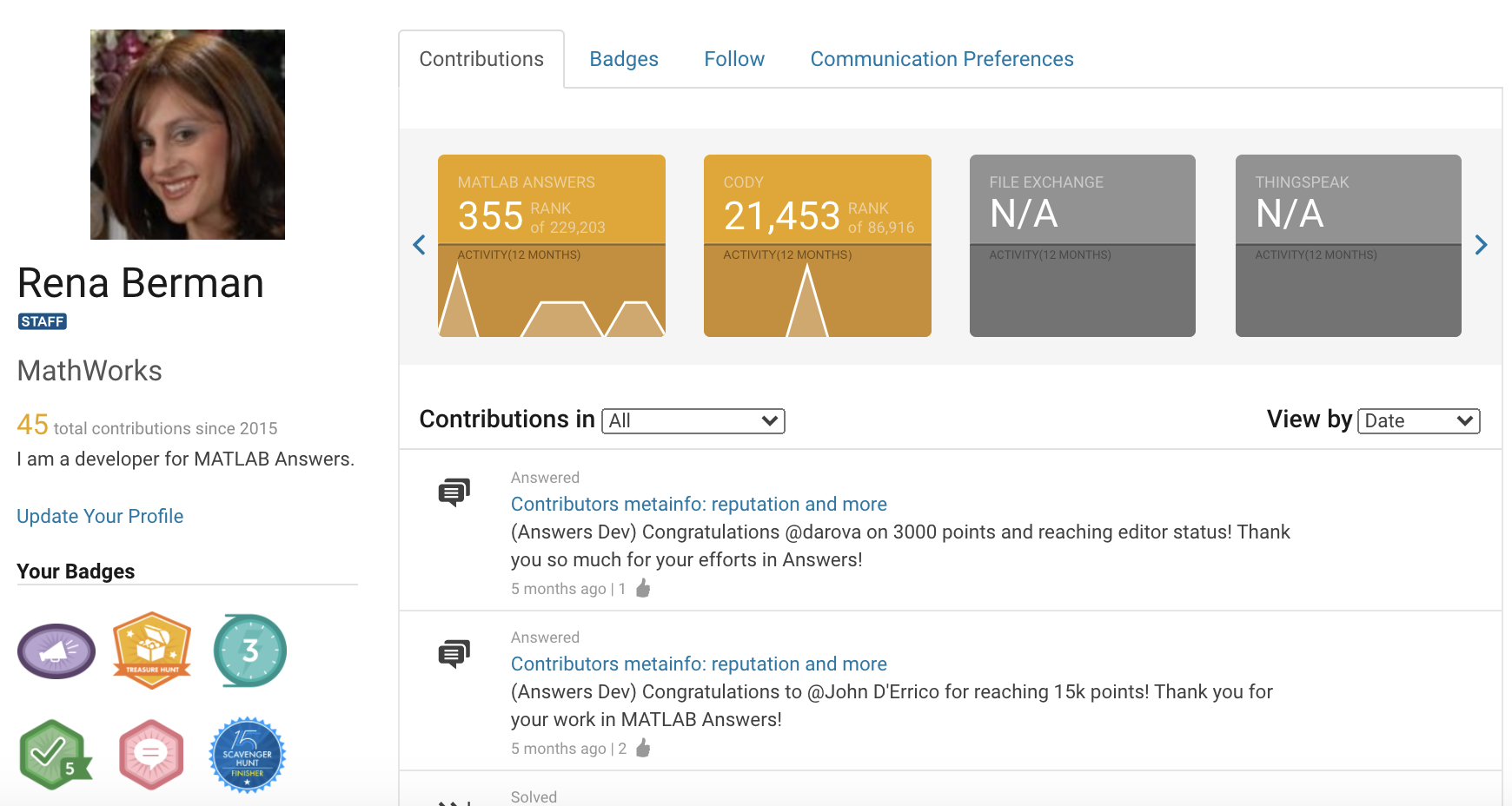 The biggest improvement is we replaced the cards and slider with a dashboard. In this Dashboard, you can easily track your activities by timeline and filter them by different applications (Answers, File Exchange, etc.). All of your stats, such as ranking and reputation, and badges earned are included in one dashboard. If you are looking at your own profile, there are tabs for managing followed content and communication preferences. We also introduced a content feed section, which brings together your contributions alongside your followed content
