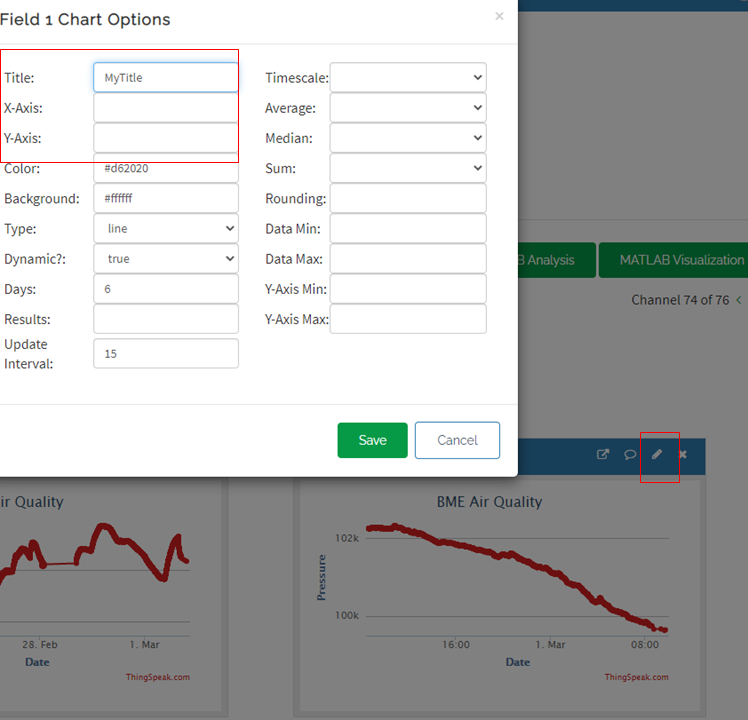 Date décroissanteCan you clarify what you mean by tag? There are channel level tags, but I am not clear what you mean by the 'fields you have configured in the channel number'. You can change the Title and axis titles in the chart parameters dialog. Click on the pencil icon on your chart to edit these properties.
