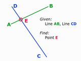% Given a line segment AB and another line segment CD, compute the point E