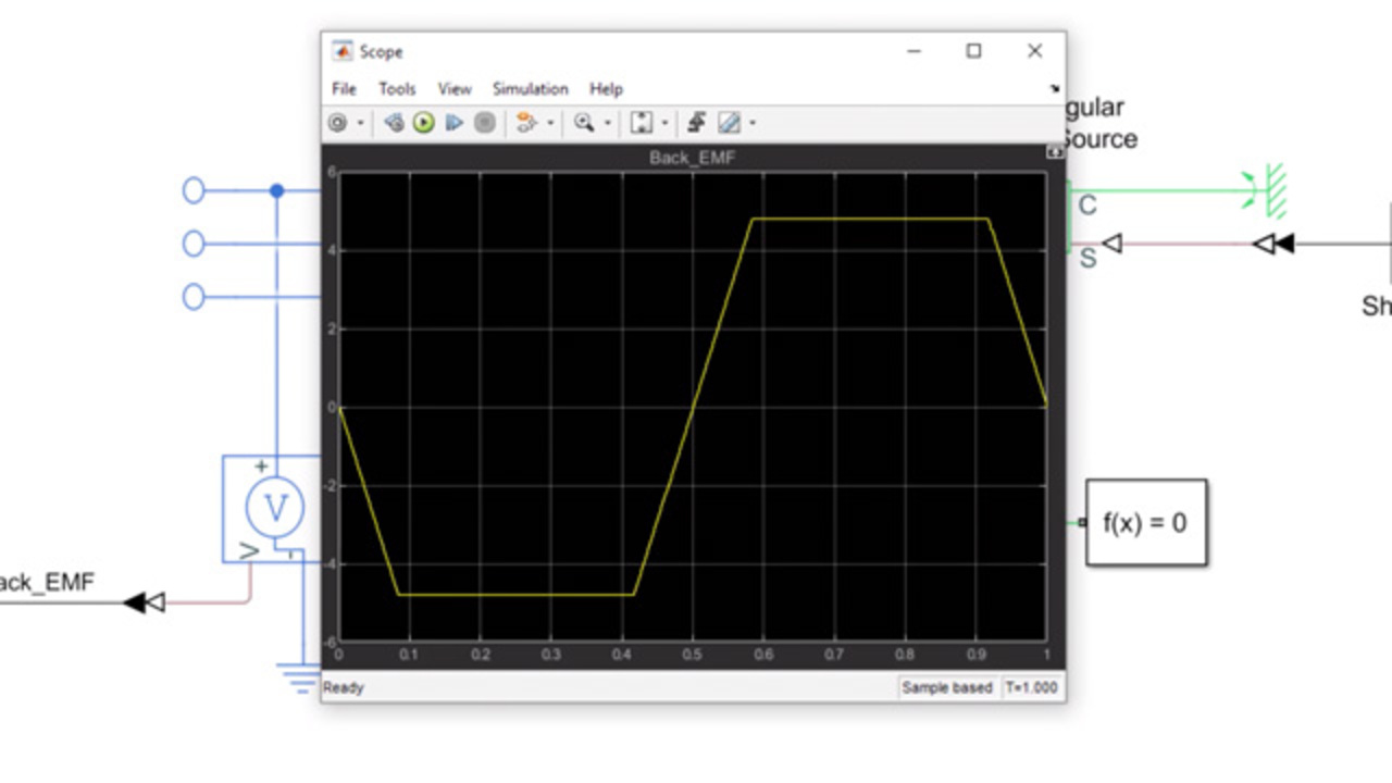 In this video, we’ll create a simple model to simulate a three-phase BLDC and investigate its back-EMF profile. In Simulink, we’ll create a scenario where we turn the motor shaft while having open terminals at all three phases and then measure the voltage produced at one of the phases to observe the back-EMF.